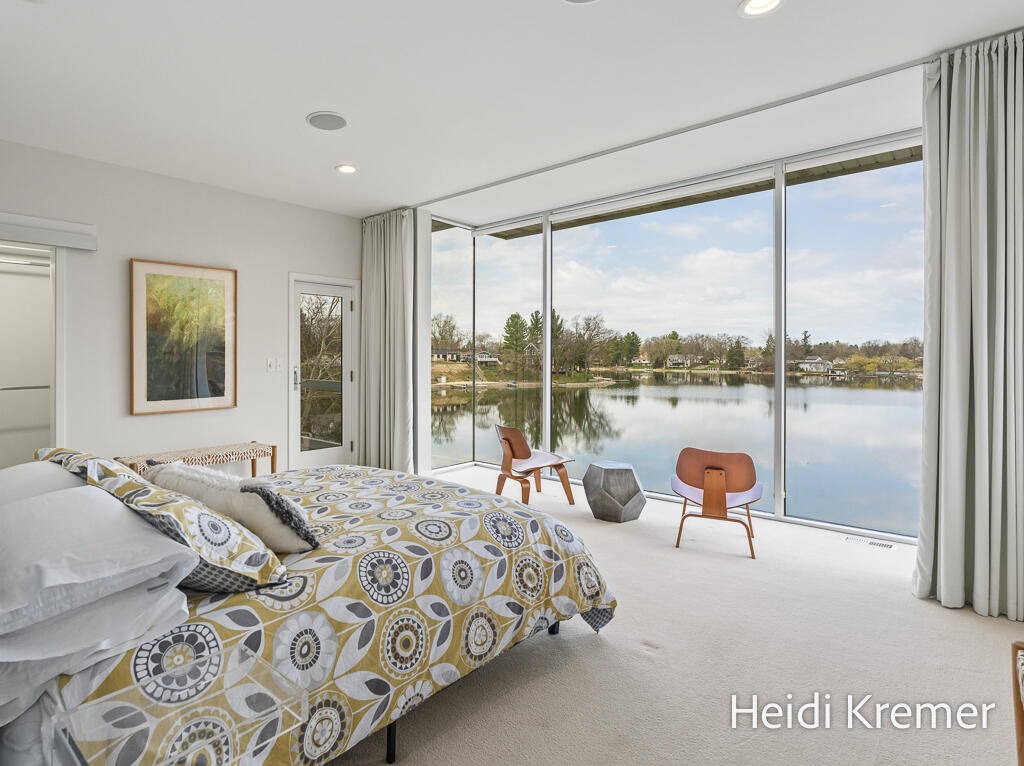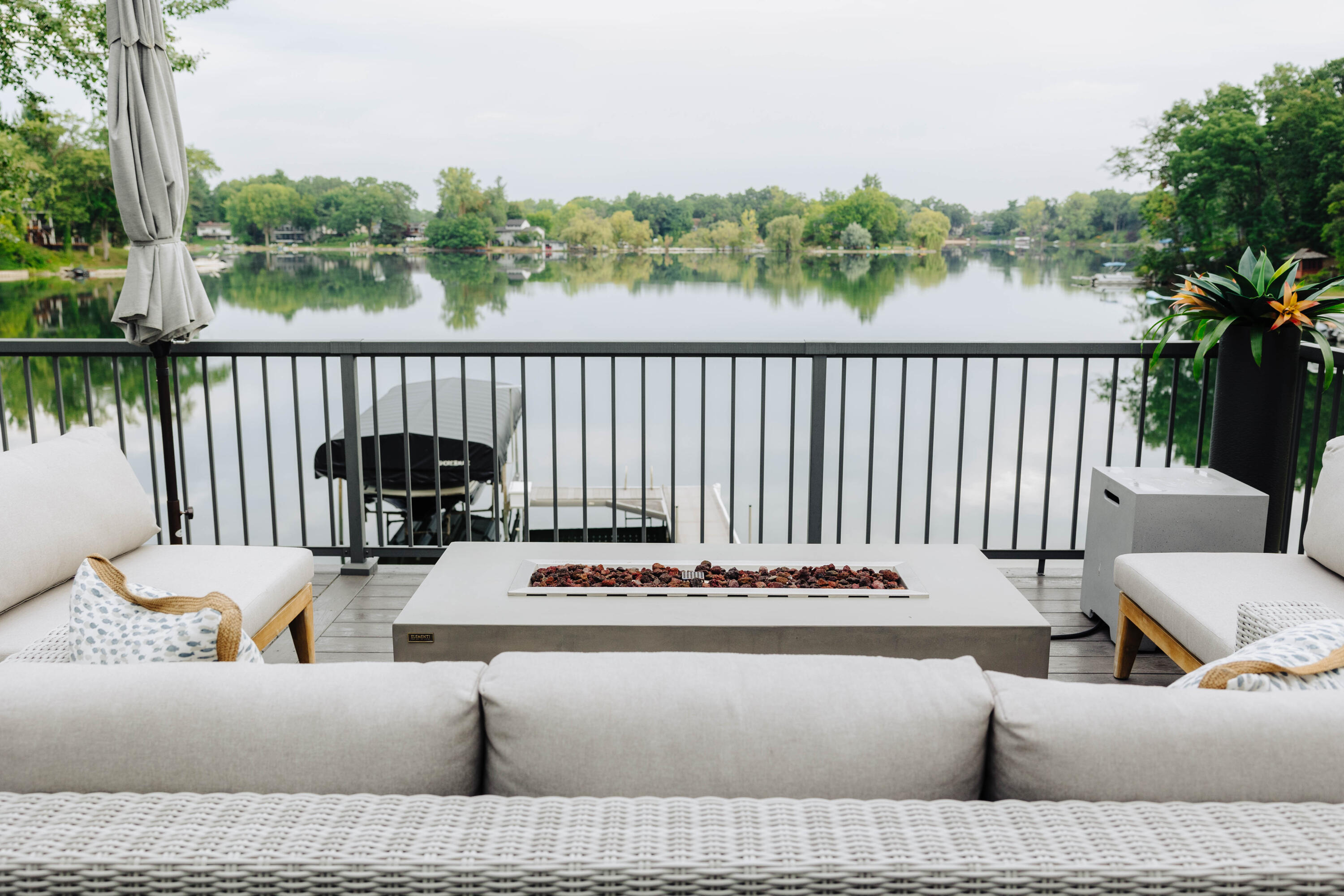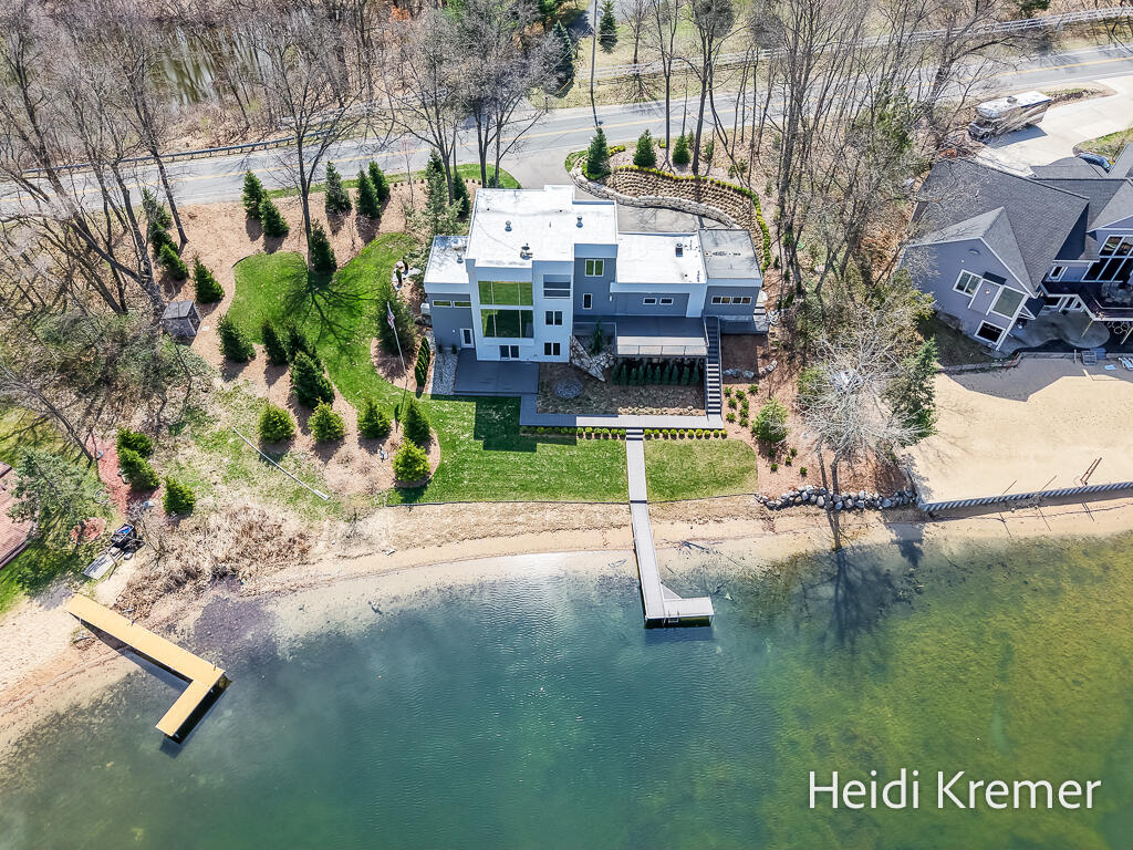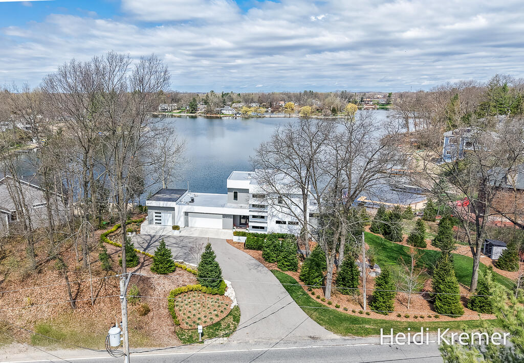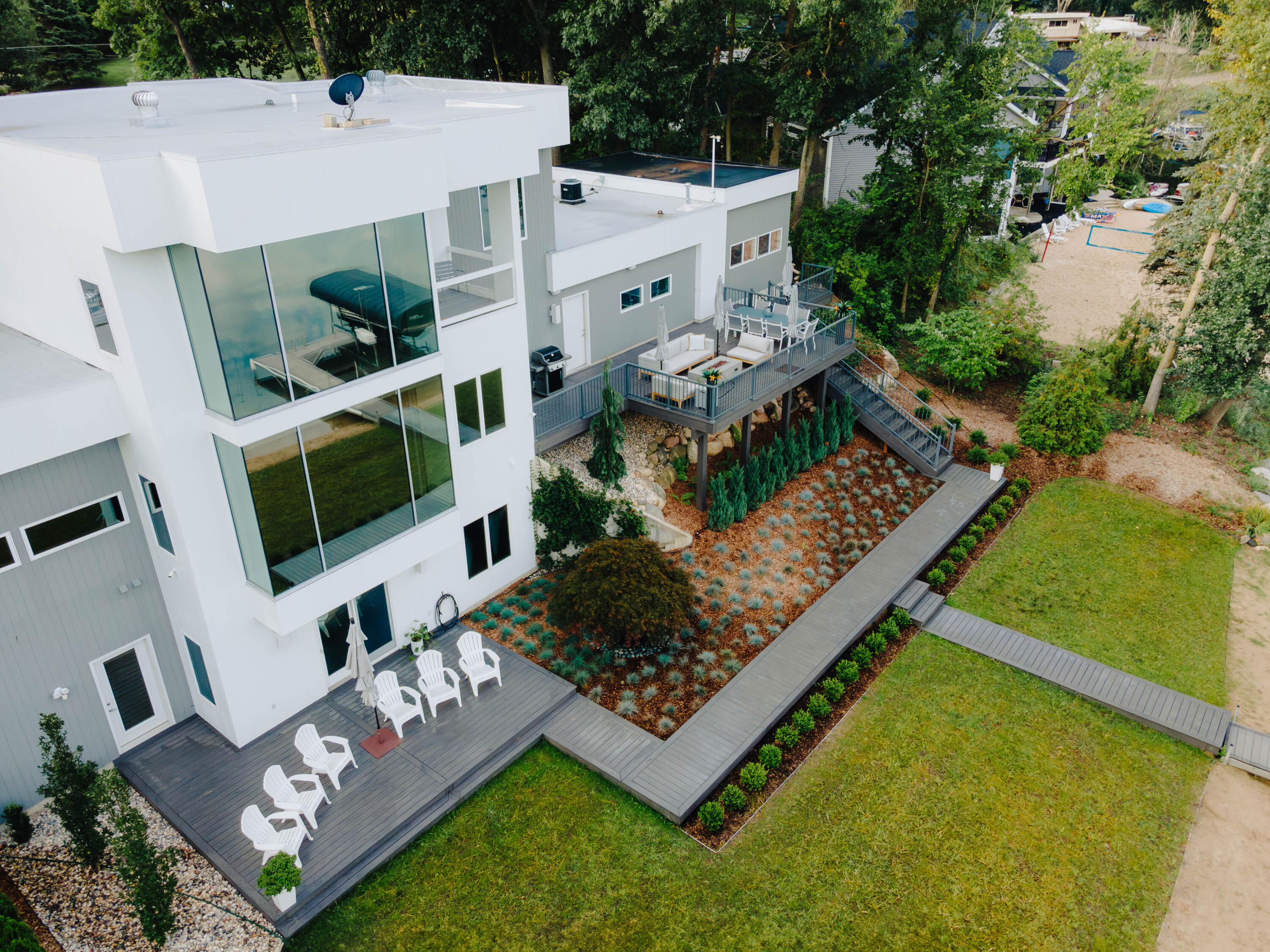 A property like this does not come available often. Enjoy 143 feet of prime private frontage on all sports Dean Lake. This meticulously maintained modern home delivers breathtaking views and a perfect setting for lake days and evening sunsets. This 4 bed/3 bath home sits on the most stunning one acre park like setting. No expense was spared on the magnificent exterior renovation. Several hundred thousand dollar yard transformation in addition to $120k deck built by Green shield. This flat accessible yard is one of the best lots on the lake! Lakeside living at its best. Enjoy your expansive deck off the main floor living or while at lake level enjoy the lower level deck off the walkout level of the home. There's even a small deck off the primary if you prefer some quiet time to relax. Boasting over 3200 square feet of living space you will find the main level the heart of the home with a large, entertaining kitchen, granite countertops and stainless steel appliances open to a large living space with breathtaking views from the floor to ceiling windows, a large dining space, and half bath and mudroom. The upper level features a luxurious primary suite with two oversized, walk-in closet, a full bathroom with duel vanities and more floor to ceiling windows for magnificent views. Enjoy a morning sunrise off your own private covered deck. Upstairs, you will also find one additional bedroom/office. The walkout lower level includes two more large bedrooms, a full bathroom, Ample storage and a laundry/utility room.. An additional family room leading to the exterior deck completes the lower level. So many modern conveniences to include a three stall, heated garage, including one stall built as a separate studio with its own heating and cooling and a separate entrance from the exterior. Great for an art studio, office, or so many other opportunities. The house also includes a whole house generator, underground Sprinkling with a pump that draws the water from the lake and a dock ready for your new boating adventures. This one won't last long. This home is move in ready and just in time for the summer months.