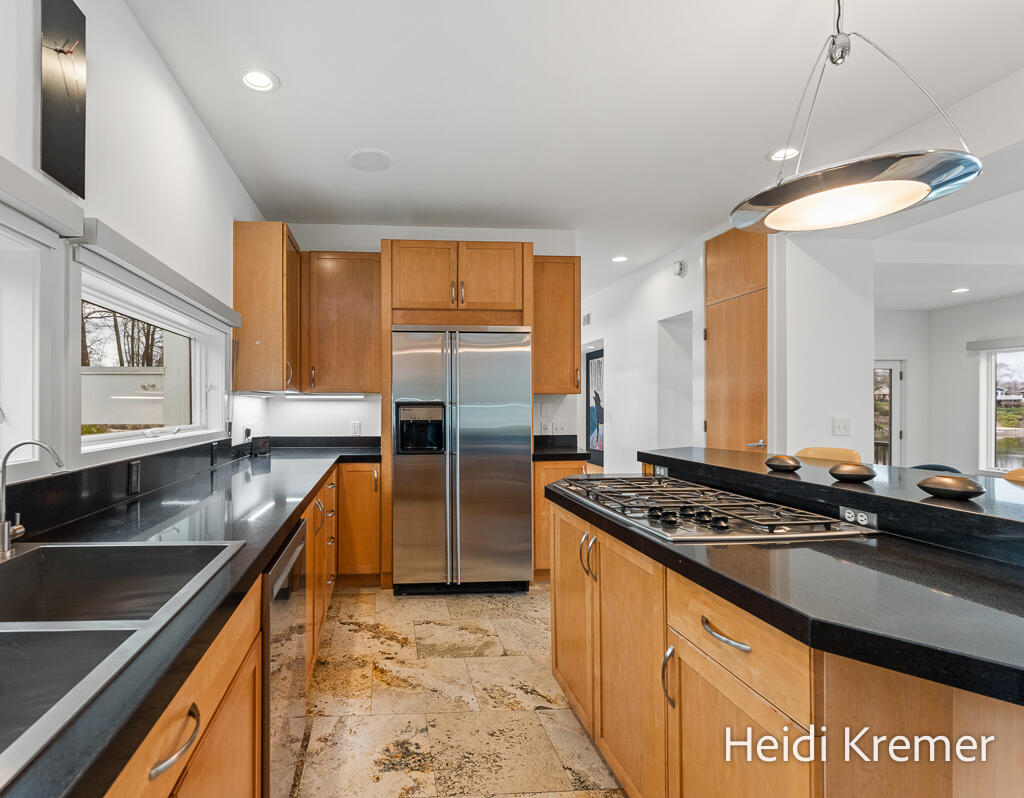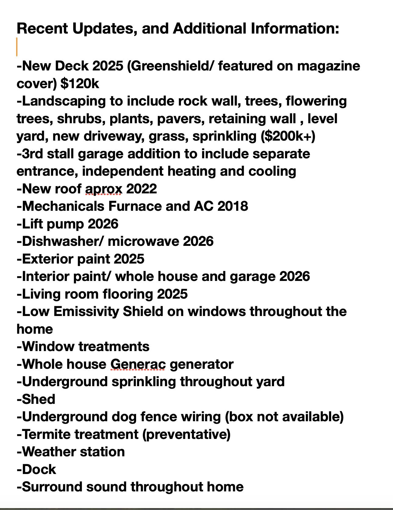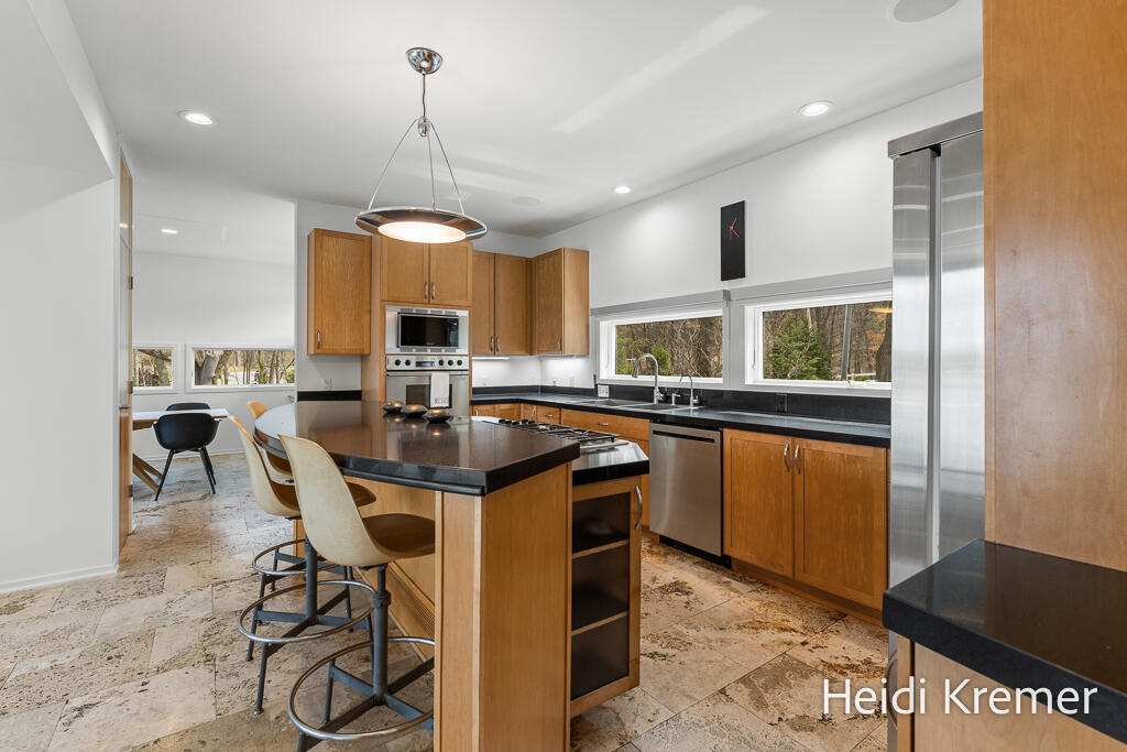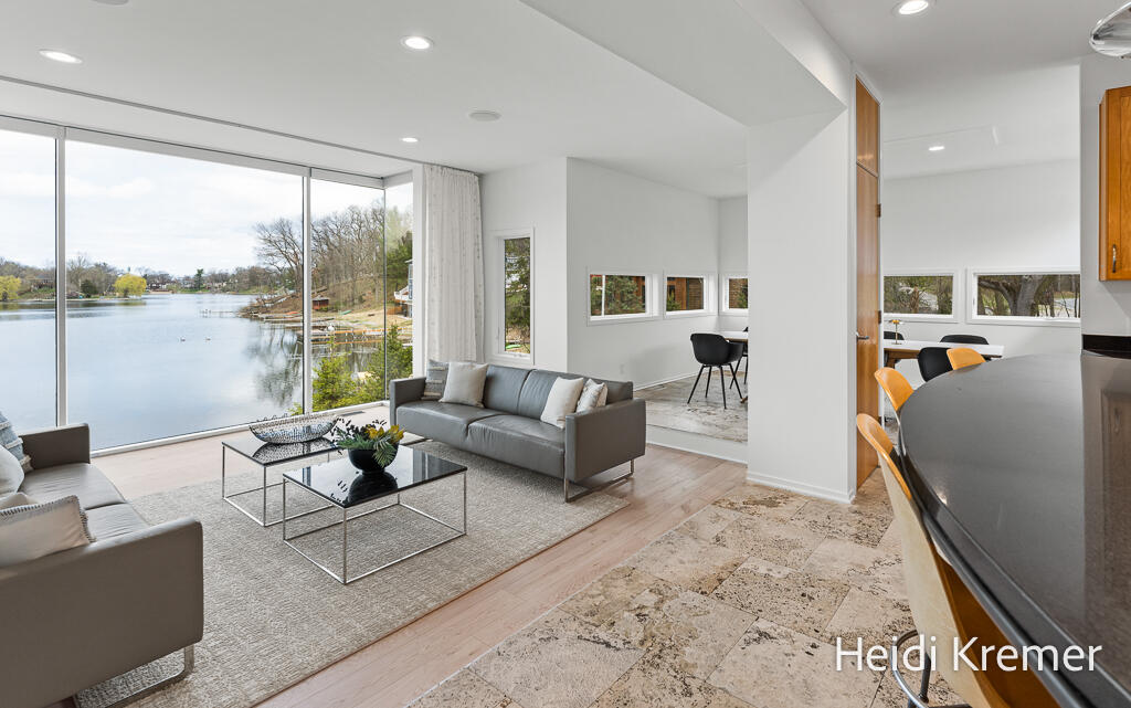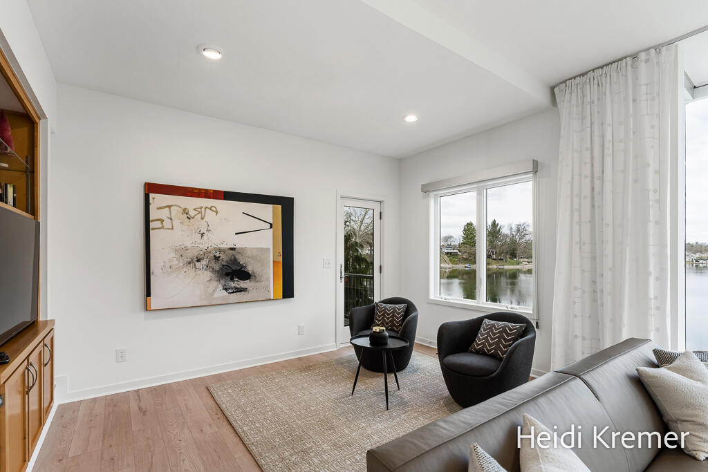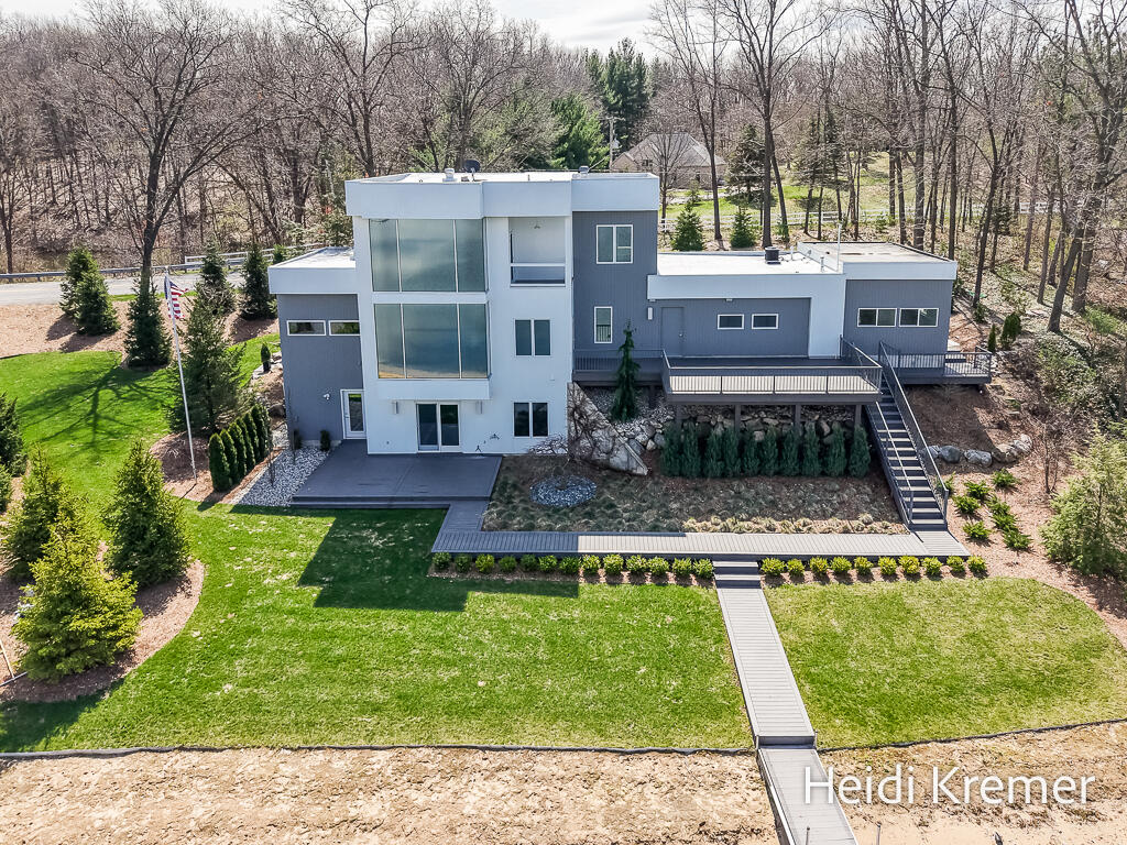 A property like this does not come available often. Enjoy 143 feet of prime private frontage on all sports Dean Lake. This meticulously maintained modern home delivers breathtaking views and a perfect setting for lake days and evening sunsets. This 4 bed/3 bath home sits on the most stunning one acre park like setting. No expense was spared on the magnificent exterior renovation. Several hundred thousand dollar yard transformation in addition to $120k deck built by Green shield. This flat accessible yard is one of the best lots on the lake! Lakeside living at its best. Enjoy your expansive deck off the main floor living or while at lake level enjoy the lower level deck off the walkout level of the home. There's even a small deck off the primary if you prefer some quiet time to relax. Boasting over 3200 square feet of living space you will find the main level the heart of the home with a large, entertaining kitchen, granite countertops and stainless steel appliances open to a large living space with breathtaking views from the floor to ceiling windows, a large dining space, and half bath and mudroom. The upper level features a luxurious primary suite with two oversized, walk-in closet, a full bathroom with duel vanities and more floor to ceiling windows for magnificent views. Enjoy a morning sunrise off your own private covered deck. Upstairs, you will also find one additional bedroom/office. The walkout lower level includes two more large bedrooms, a full bathroom, Ample storage and a laundry/utility room.. An additional family room leading to the exterior deck completes the lower level. So many modern conveniences to include a three stall, heated garage, including one stall built as a separate studio with its own heating and cooling and a separate entrance from the exterior. Great for an art studio, office, or so many other opportunities. The house also includes a whole house generator, underground Sprinkling with a pump that draws the water from the lake and a dock ready for your new boating adventures. This one won't last long. This home is move in ready and just in time for the summer months.