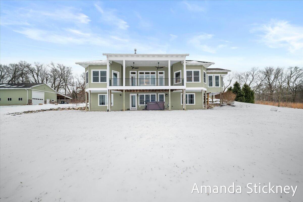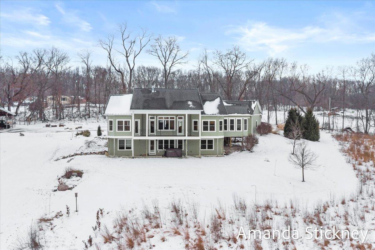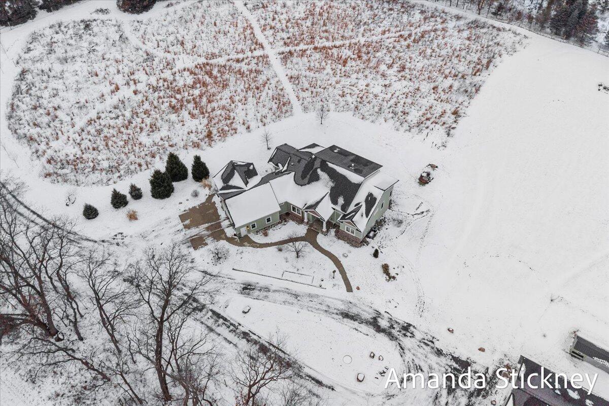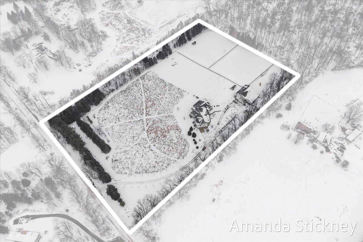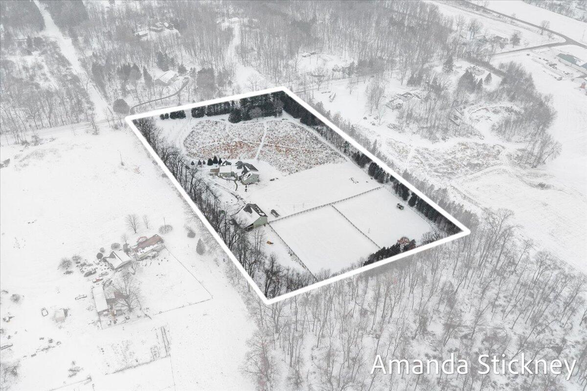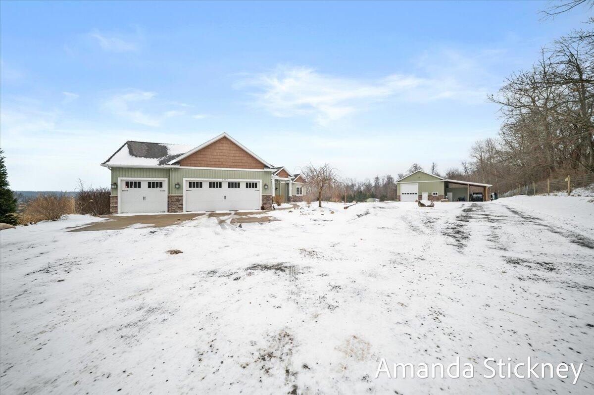 Sweeping northern views, modern finishes, and space to spread out--4343 S Montcalm Avenue offers it all. This 4 bed, 4 bath custom ranch sits on 10.58 acres just minutes from downtown Lowell. Inside you'll find a chef's kitchen with granite counters, double islands, walk-in pantry, and open-concept layout leading to a living area with floor-to-ceiling stone fireplace. The main floor primary suite features dual walk-in closets, sitting area, and deck access. Recently completed major updates including finishing the 3-season room, full bathroom in the lower level, a second full kitchen, and a second laundry space--perfect for guests or multigenerational living. The walkout basement includes recreation space, dining area, and kitchenette, complete with in-floor heat. Outside, enjoy a covered deck, patio, and a massive 50x60 outbuilding with attached 2 stall barn/feed stall. Additional features include central air, radiant heat, full house generator and high-speed internet available