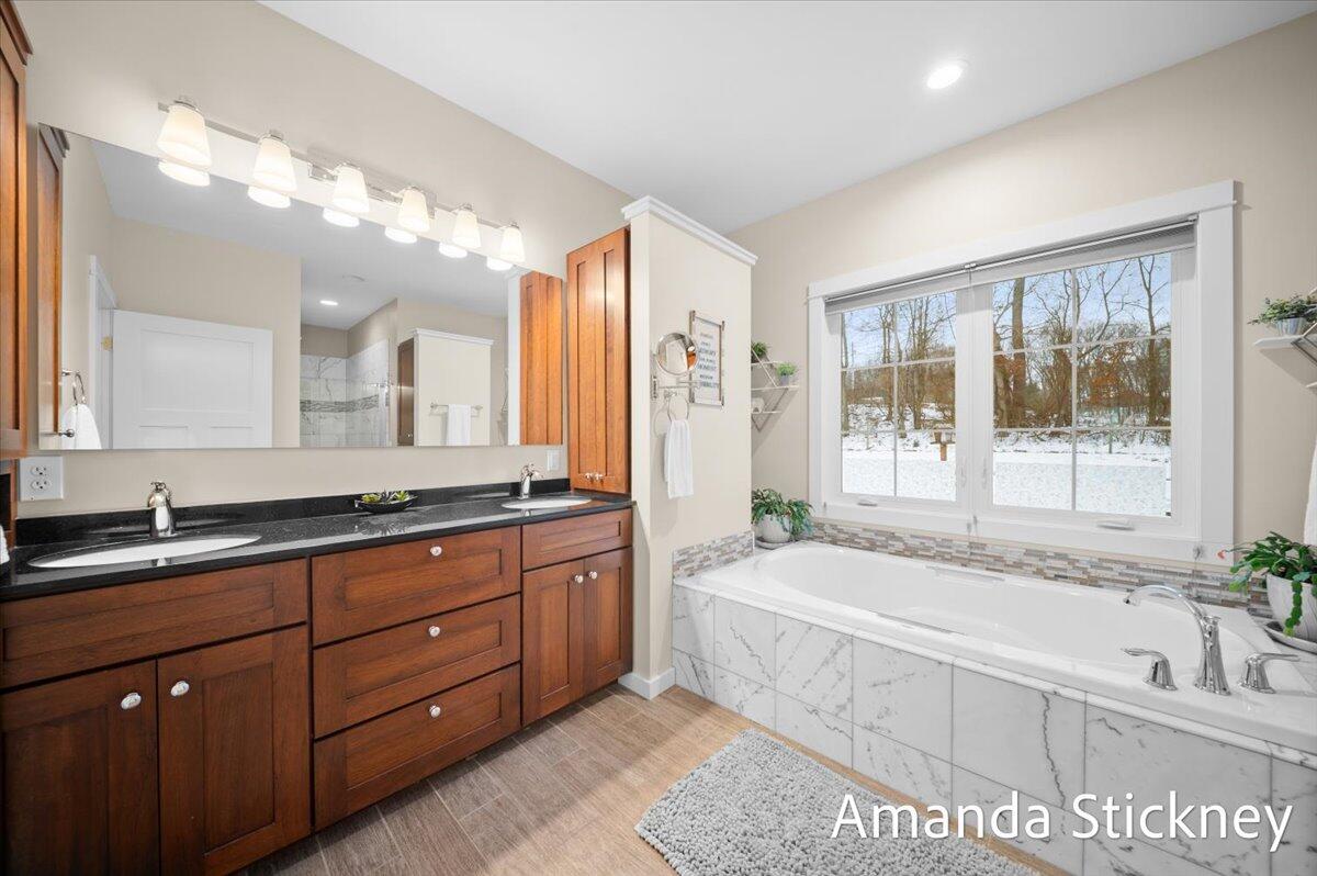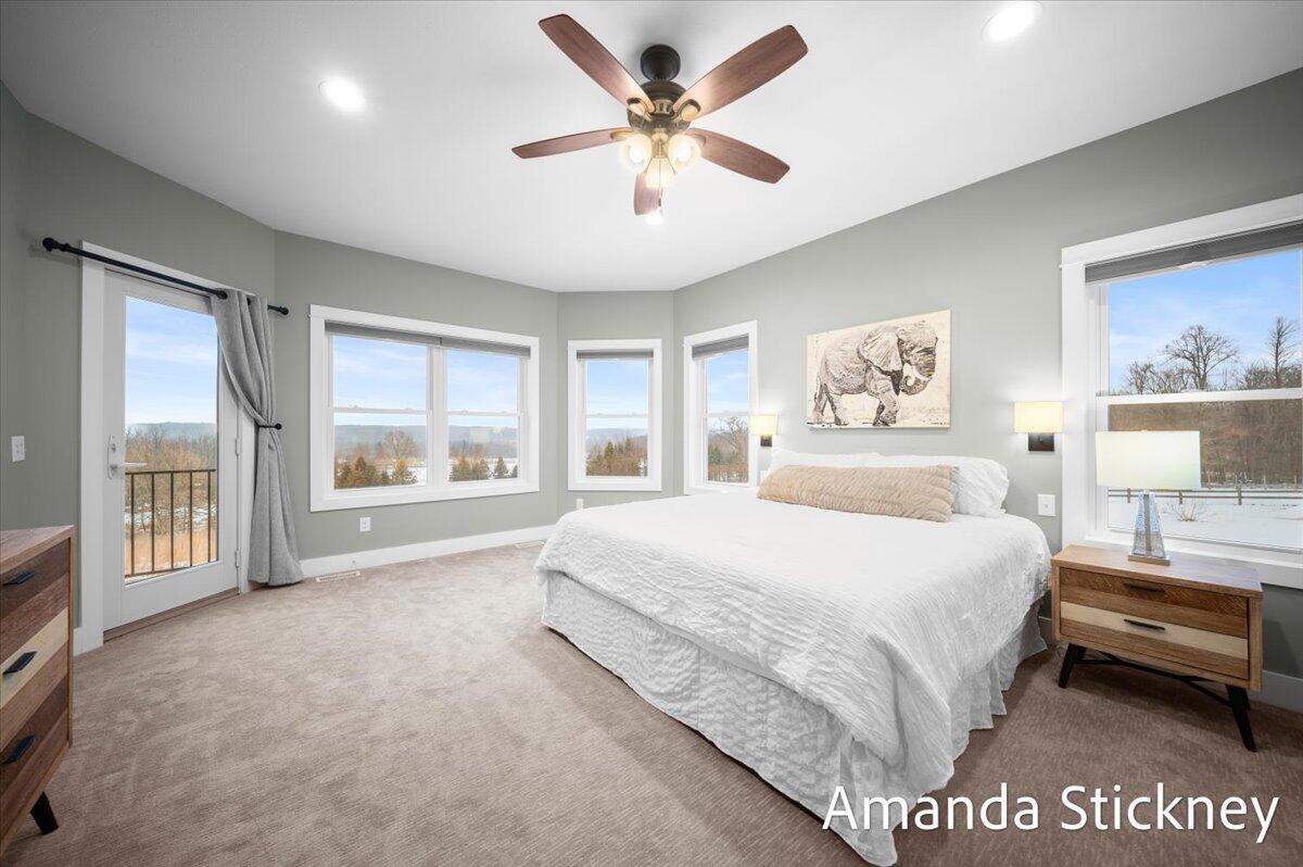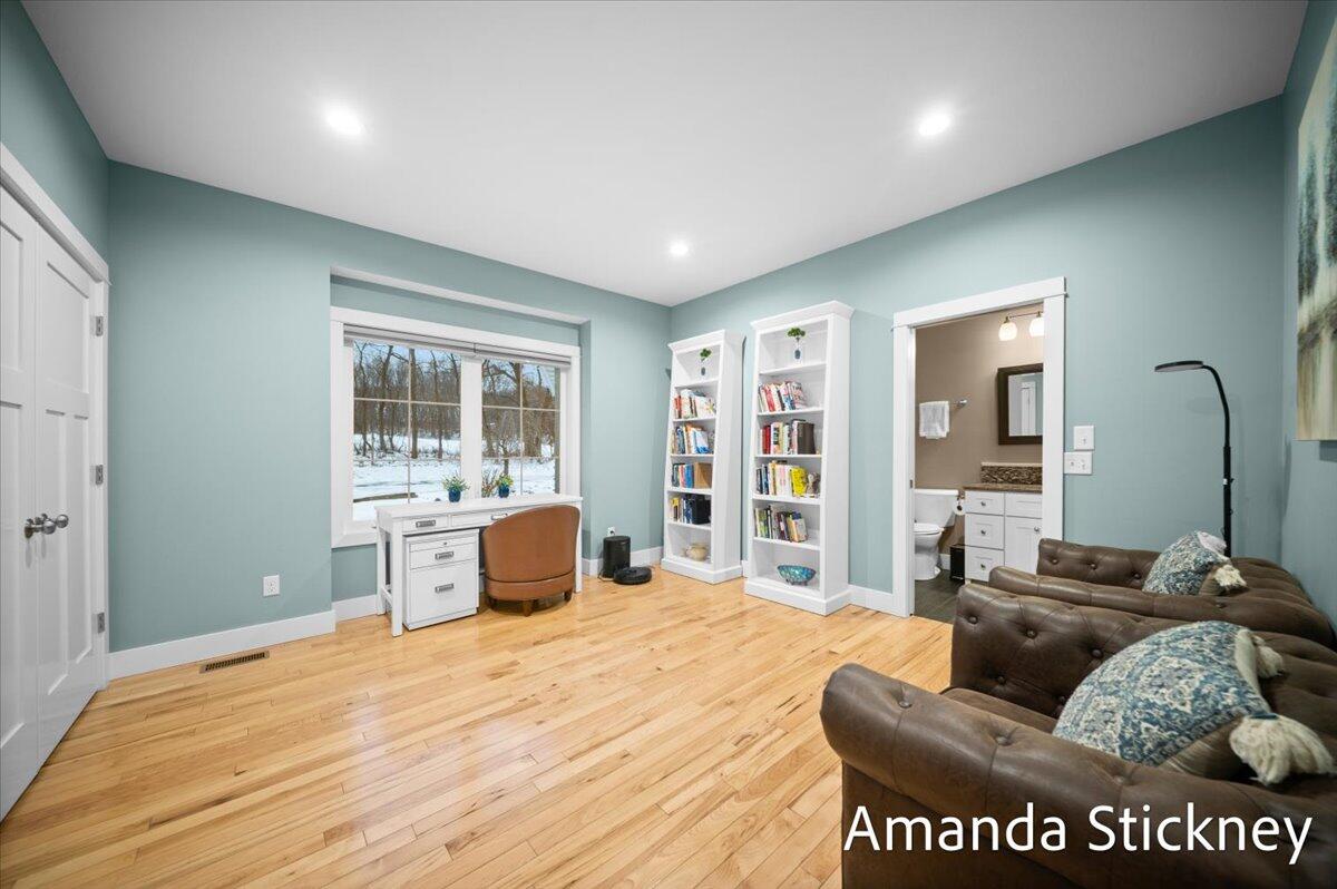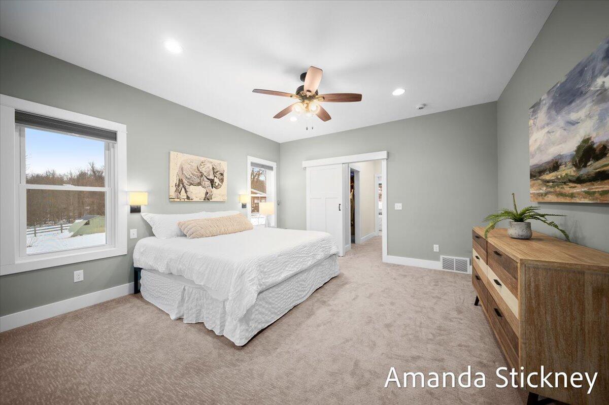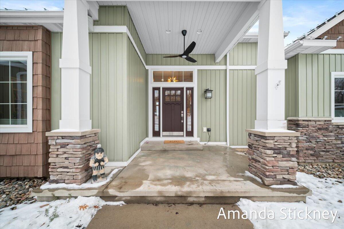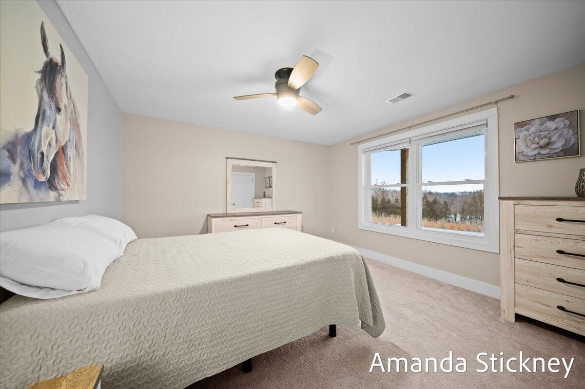 Sweeping northern views, modern finishes, and space to spread out--4343 S Montcalm Avenue offers it all. This 4 bed, 4 bath custom ranch sits on 10.58 acres just minutes from downtown Lowell. Inside you'll find a chef's kitchen with granite counters, double islands, walk-in pantry, and open-concept layout leading to a living area with floor-to-ceiling stone fireplace. The main floor primary suite features dual walk-in closets, sitting area, and deck access. Recently completed major updates including finishing the 3-season room, full bathroom in the lower level, a second full kitchen, and a second laundry space--perfect for guests or multigenerational living. The walkout basement includes recreation space, dining area, and kitchenette, complete with in-floor heat. Outside, enjoy a covered deck, patio, and a massive 50x60 outbuilding with attached 2 stall barn/feed stall. Additional features include central air, radiant heat, full house generator and high-speed internet available