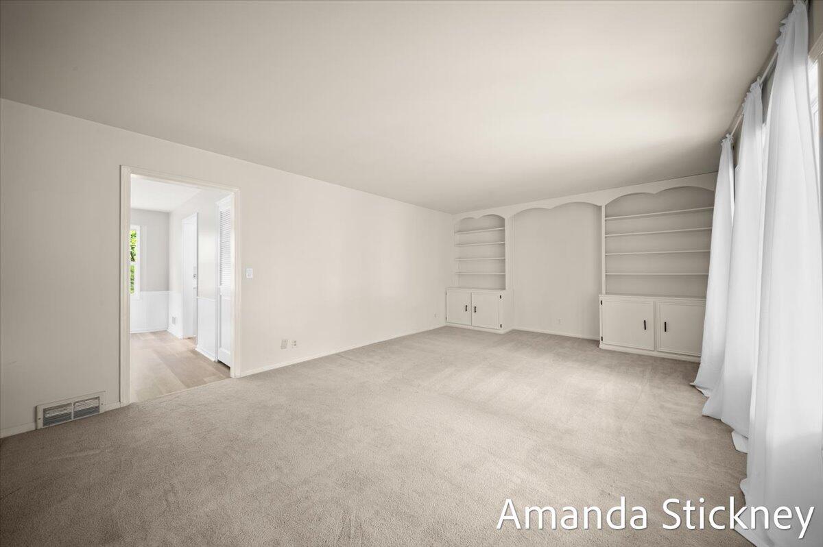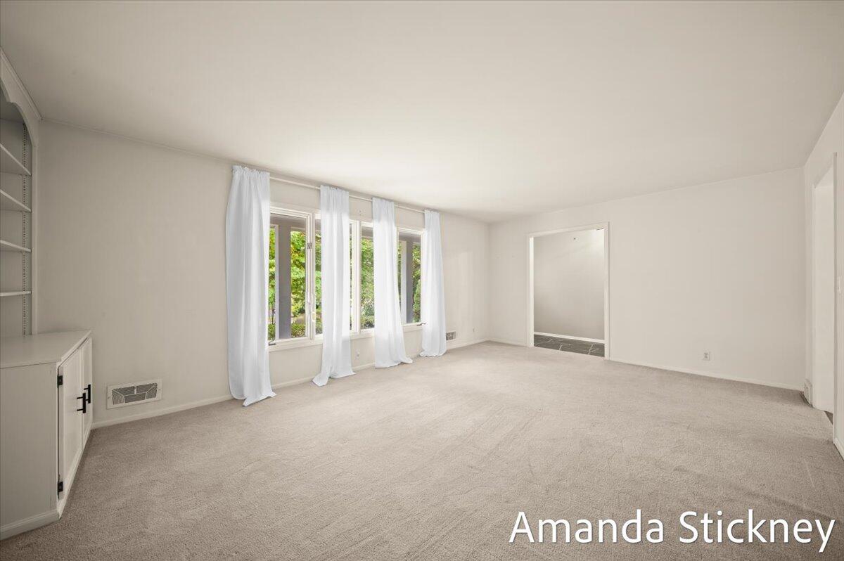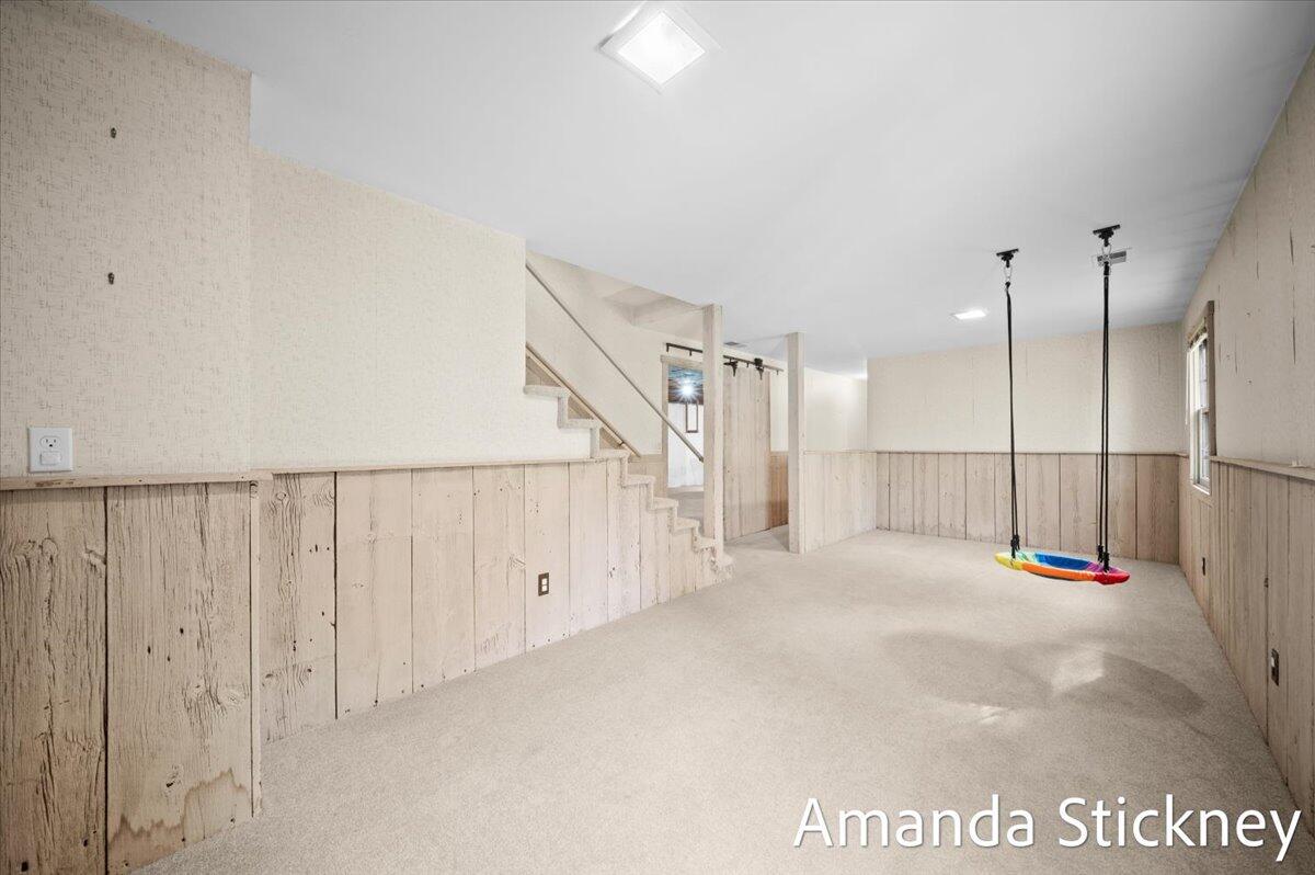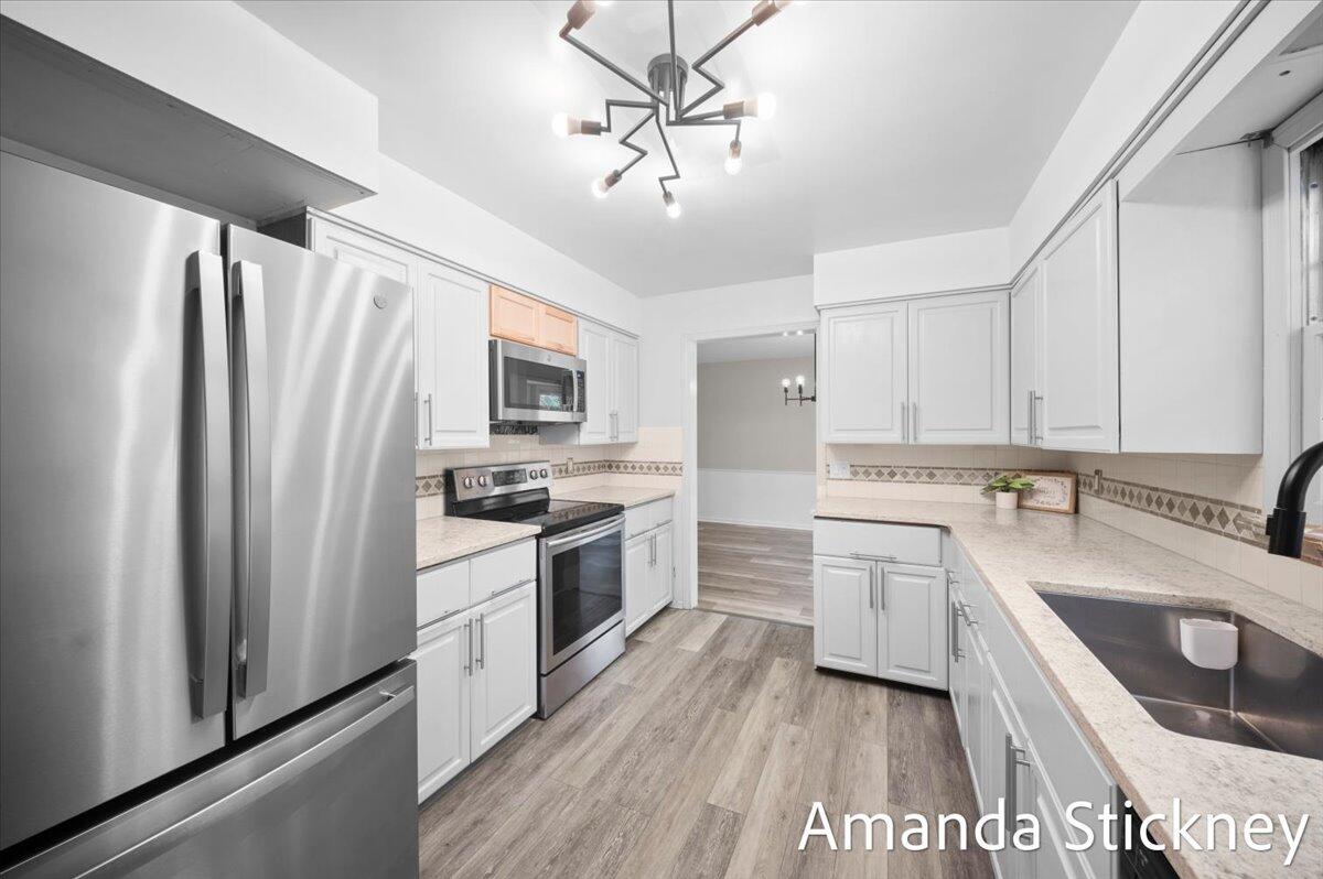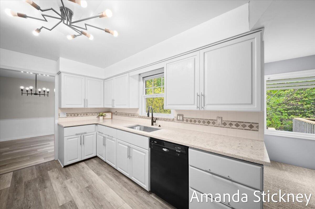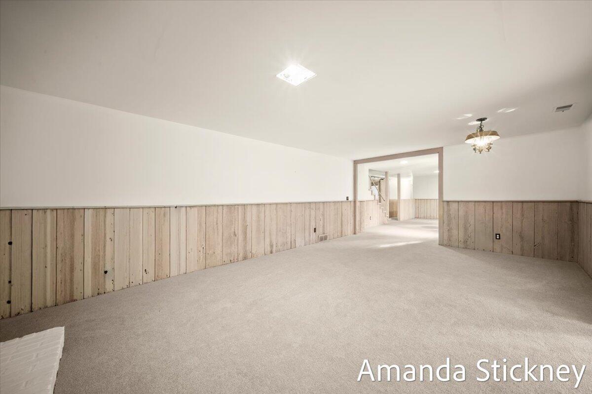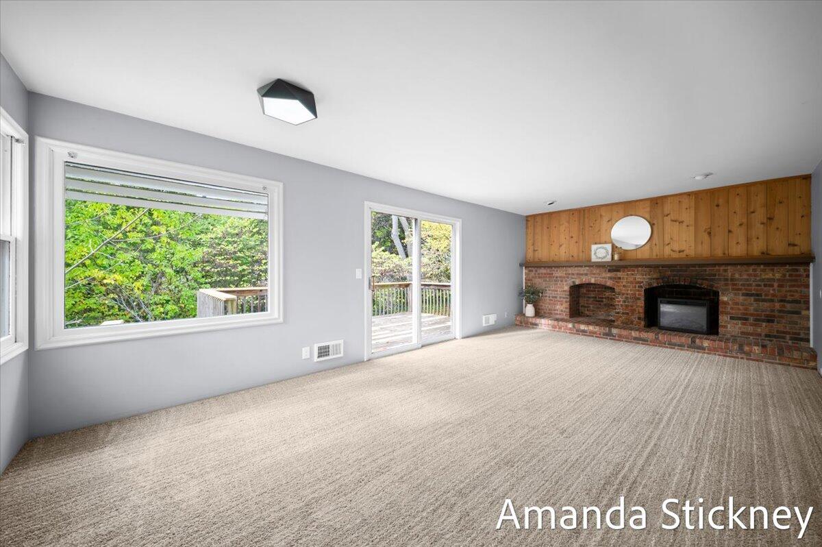 Welcome to your private retreat in Kentwood! This spacious walkout ranch combines comfort, style, and a peaceful setting perfect for entertaining or relaxing. The updated kitchen features quartz countertops, a large stainless farmhouse sink, maintenance-free flooring, refreshed cabinetry, and sleek stainless appliances. Host gatherings in the formal dining and living rooms with bay windows and built-in bookcase, or unwind by the cozy brick fireplace in the family room with sliders to the deck. The finished walkout level adds even more living space with a second fireplace, game or craft area with sliding barn door, and access to a private backyard oasis complete with hot tub and creek views. Thoughtful updates, generous space, and a tranquil atmosphere make this home truly special!
