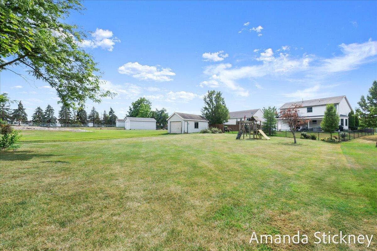Back on MARKET! No fault of the home - buyer's financing fell through! Already inspected and appraised, this gem is ready for a new buyer to fall in love! Don't MISS your Second Chance! Welcome to 6751 Vantage Drive SE, Caledonia! This 5 bed, 3.5 bath home offers nearly 3,000 finished sq ft with soaring ceilings, a gas fireplace, and open-concept living. The kitchen features quartz countertops, a large island, and stainless appliances. Enjoy the main floor primary suite with tray ceilings, walk-in closet, and en-suite bath. Upstairs are 3 more bedrooms and a full bath. The daylight basement includes a second living room with wood-burning fireplace, 5th bedroom, full bath, bonus room, and spacious laundry. Outside, enjoy a large deck and generous backyard and an extra garage for all of your projects and storage needs!